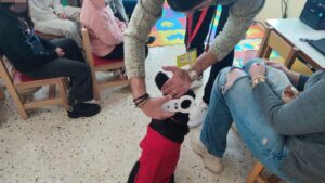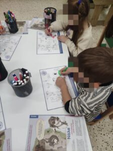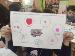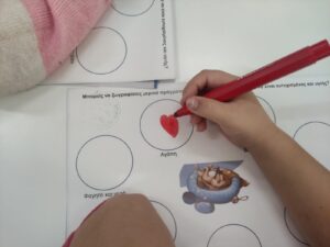 Συμπληρωσαν με διαθεση και δημιουργικοτητα τα φυλα εργασίας που τους προσφέραμε για να καταγραψουν με σχηματα και ζωγραφιές τι εχει ανάγκη ενα ζωακι για να ειναι χαρουμενο και ευτυχισμενο με την οικογενεια του ,εζησαν βιωματικα την αγαπη και τα χαδια ενος σκυλακου οπως ειναι ο Μικυ Μικυ και η Τζωρτζινα ,πρωην αδεσποτακια που σωθηκαν την τελευταια στιγμη απο τους Εθελοντες της ΖΩΦΟΡΟΣ Δημήτρη Κρητικάκη και Αννα Τζαγκαράκη που έκαναν κ την παρουσίαση των προγραμμάτων στους μαθητές.’